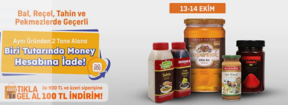 13-14 Ekim tarihleri arasında Migros Money Club üyeleri, çikolata barlardan bala, reçelden tahine kadar birçok üründe “İki Öde Biri İade” fırsatından yararlanabilecek. Aynı üründen iki adet alana biri tutarında Money puan iadesi yapılacak!